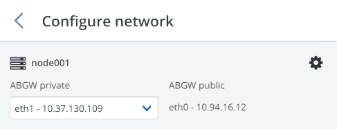 If necessary, click the cogwheel icon and configure the node’s network interfaces on the Network configuration screen.