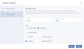 On Storage policy, select a redundancy mode, a storage tier, and a failure domain. To benefit from high availability, select a mode other than No redundancy and failure domain other than Disk.