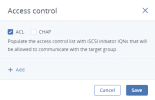 - In the Access control window, click the pencil icon of the desired initiator then click Edit or Delete.