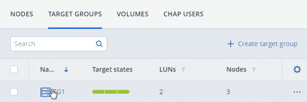 Open Storage services > Block storage > Target groups, click the name of the desired target group to open it.