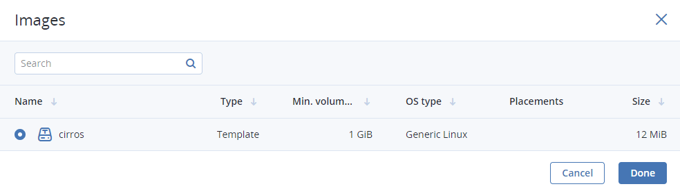 If you select an image or volume with an assigned placement, the created VM will also inherit this placement.