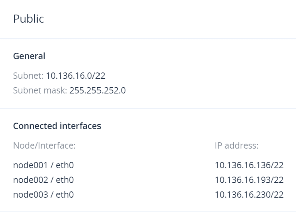 - The Connected interfaces section shows the nodes’ network interfaces with their IP addresses.